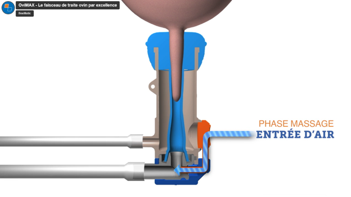 L’air chasse le lait et permet donc une meilleure évacuation pour au final une traite et un débit de lait plus rapide. Ce flux d’air empêche également le retour du lait sur le trayon et évite ainsi le phénomène de traite humide qui peut être un risque d’apparitions de mammites.