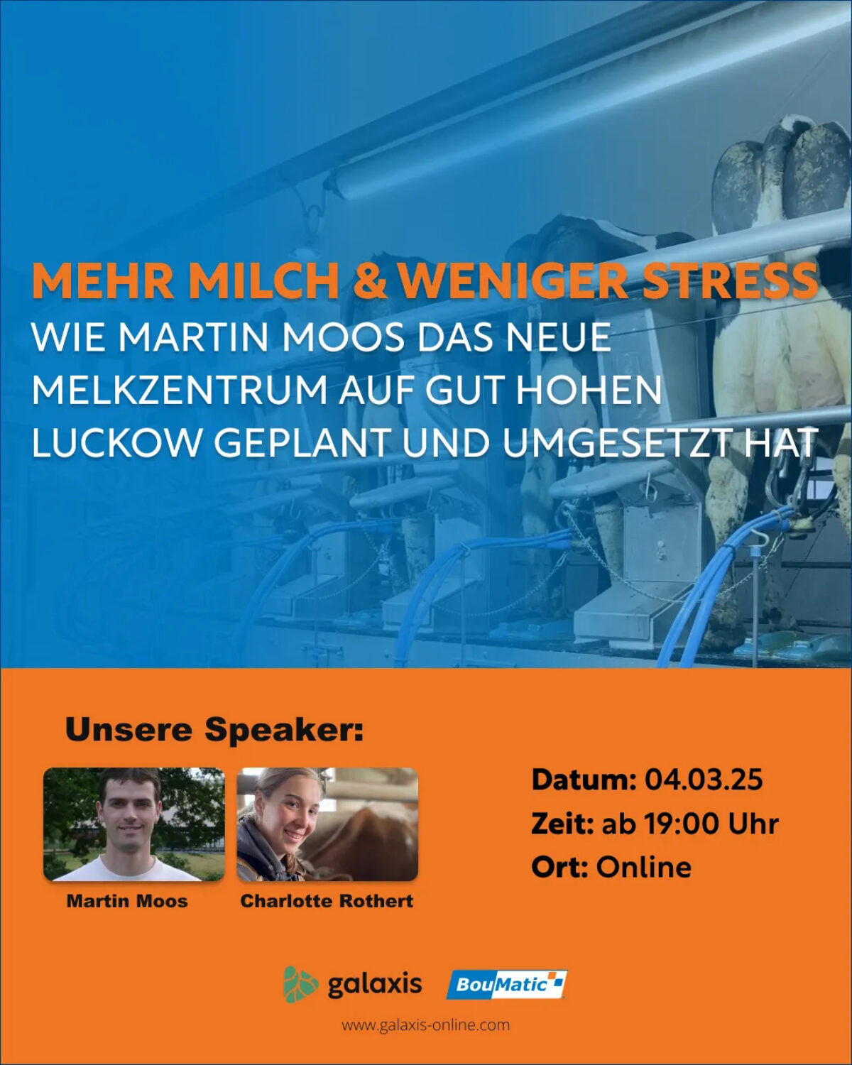 Martin Moos ist einer der erfolgreichsten Herdenmanager in Europa und setzt bei seinen Entscheidungen auf internationales Know-How. In unserem Webinar am 04.03.2025 erklärt er dir, wie er das neue Melkzentrum auf Gut Hohen Luckow geplant und umgesetzt hat. Mit globalem Fachwissen, klugen Lösungen und einem klaren Ziel: Mehr Milch und weniger Stress.