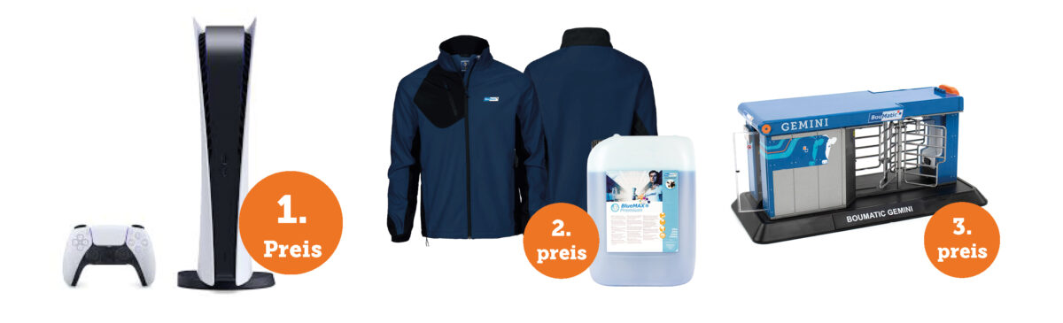2. Preis: 3 Gewinner erhalten jeweils einen BouMatic Softshell-Jacke und 20kg BlueMAX Premium Kanister.