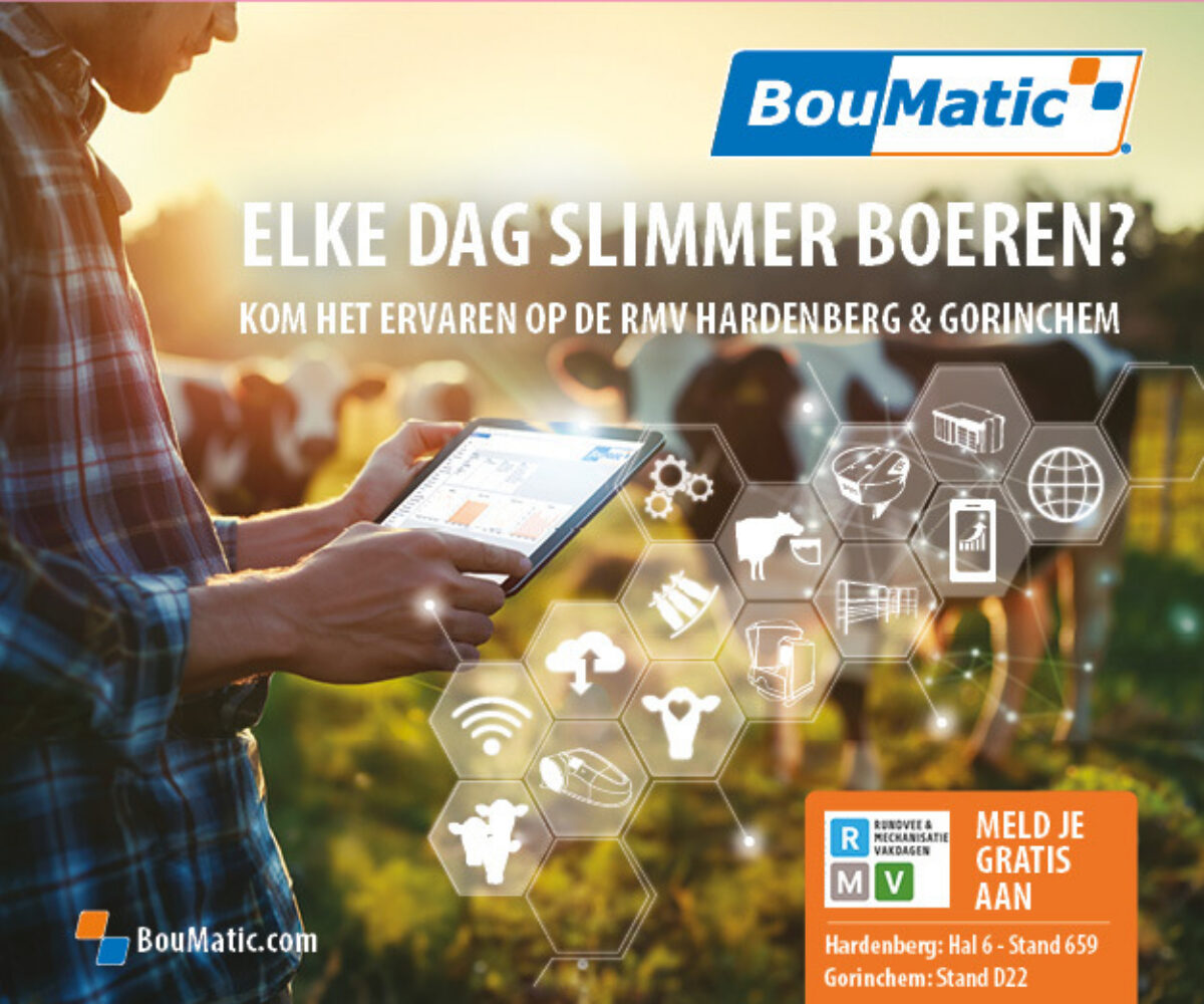 Met BouMatic’s geautomatiseerde oplossingen in melken, voeren en stalmanagement haalt u meer uit elke dag. Ontdek op de RMV Hardenberg hoe innovatie uw werk makkelijker maakt – efficiënt, betrouwbaar en toekomstgericht.